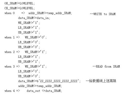 程序中,在进行读写操作时,片选使能信号CE_SRAM及输出使能信号OE_SRAM始终为低电平。