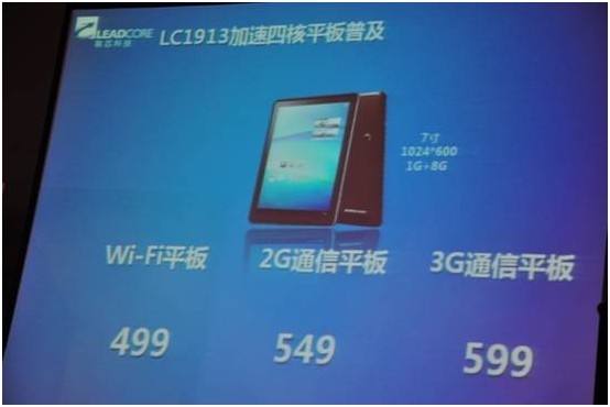 “中国的平板电脑厂商主要集中在中低端市场,但我们选择了499-999元市场区间作为主要目标,这也是我们四核可通话方案更能发挥用武之地的中端市场区间。通过我们的高性价比四核平台,平板电脑客户可以在差异化设计上更有作为,也能获得更大的利润空间。”负责平板产品线的联芯科技副总裁成飞指出。