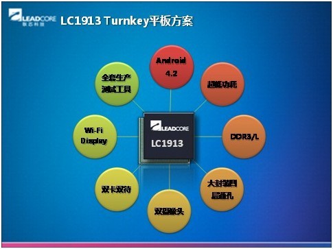 联芯首次发布的LC1913采用四核ARM Cortex A7 1.4GHz内核,具备1300万像素ISP能力,支持2.75G-3G通信(TD-HSPA及Class12EGPRS) 功能。LC1913秉承了联芯科技一贯的高性价比优势,具备可靠强大的性能,且能大幅降低四核中端通话平板电脑产品的成本,为国内平板电脑处理器阵营注入了一股新鲜血液。联芯联合众多方案商和终端客户的实力,使LC1913有望在平板电脑市场掀起一股新的热潮。