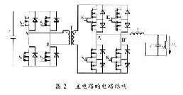 本文的高频链周波变换型采用移相控制方案,移相控制是近年来在全桥变换电路拓扑中广泛应用的一种控制方式。移相控制的基本工作原理为,全桥变换电路每一个桥臂的两个开关管互补导通,两个桥臂的开关管导通之间相差一个相位,即所谓的移相角。通过调节此移相角的大小,来调节输出电压脉冲宽度,达到调节相应的输出电压的目的。
