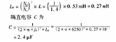 为了防止变压器的偏磁饱和,一方面,调整驱动脉冲死区,选择开关特性一致的功率开关管;另一方面,在变压器的原边串联隔直电容。有关几个参数的计算公式如下: