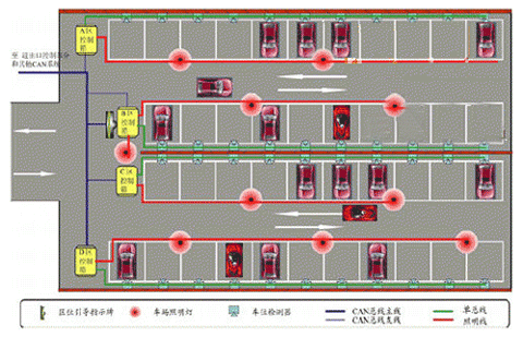 当然,车位探测器的网络组建也可以使用CAN-bus方式来实现,基本上不会受到车位数量的制约,且可以方便地实现设备管理、故障定位等众多特定功能。