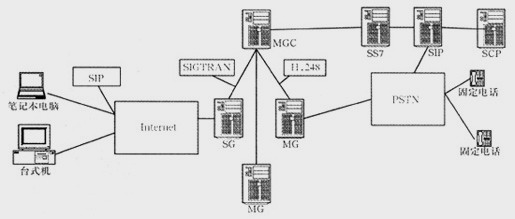 随着用户规模的扩大以及用户对业务需求的增长,网关在规模上要不断扩大。集中型的网关结构在可扩展性、安全性以及组网的灵活性方面的不足日益显露出来。因此,将业务、控制和信令分离的概念被提了出来,即将IP电话网关分离成三部分:信令网关(SG)、媒体网关(MG)和媒体网关控制器(MGC)。SG负责处理信令消息,将其终结、翻译或中继;MG负责处理媒体流,将媒体流从窄带网打包送到IP网或者从IP网接收后解包并送给窄带网; MGC负责MG资源的注册、管理以及呼叫控制。在这种分布式网关体系结构中,MG和MGC之间采用H.248协议,SG和MGC之间采用SIGTRAN协议。