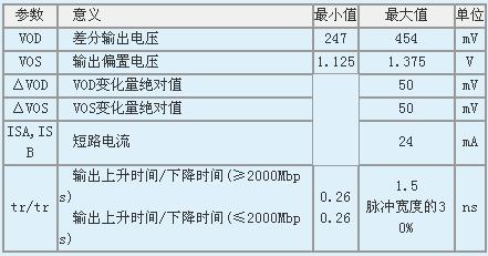 表1是LVDS驱动器的主要电特性参数,