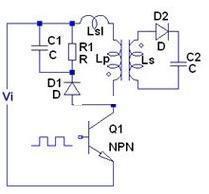 这个电压和输入电压之和(VIN +VFLBK)直接加到了功率开关管Q1的集电极上,容易造成功率开关管Q1的二次击穿而损坏。为了钳位电压尖峰值在开关管的额定值以内,最常用RCD吸收电路,使得开关管关断期间,储存在漏感中的能量转移到吸收网络电容C1里,并且最终消耗在电阻R1上,如图2所示。