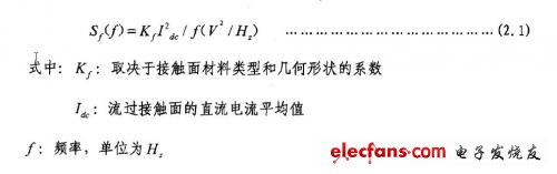 2.导体间的接触噪:声接触噪声又叫1/f噪声,由两种导体的接触点电导的随机涨落引起的,凡是有导体接触不理想的器件都存在接触噪声;1/f噪声电流的幅度分布为高斯型,其功率谱密度函数今Sf(f)正比于工作频率f的倒数,今(f)可表示为: