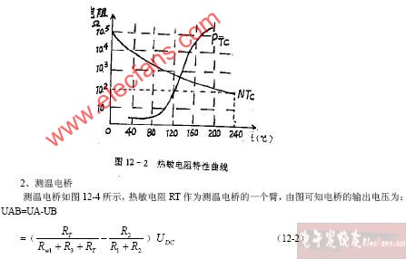 阻PTC,NTC和PTC的特性曲线如图12-2 所示,由图可以看出NTC和PTC 都为指数曲线,NTC