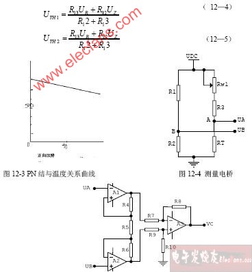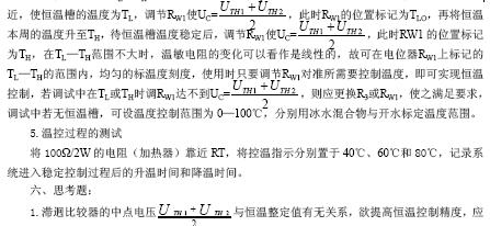 UTH1—UH2决定。由设计要求的温控精度可以计算出UTH1和UTH2,再根据电路给定的U2,UR、