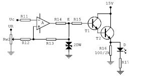 电压比较器采用如图12—6 所示的滞回比较器,滞回比较器的阀值电压为: