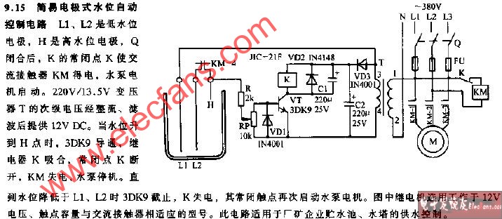 简易电极式水位自动控制电路