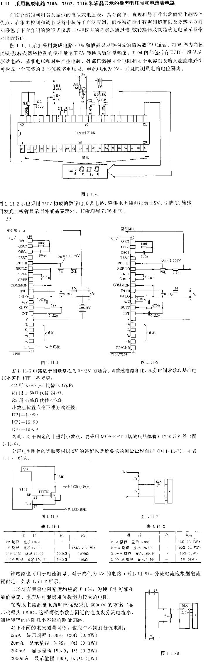基于7106、7107、7116和液晶显示的数字电压表和电流表的制作 前面介绍的利用表头显示的模拟式电压表,具有简单、直观和易于看出数