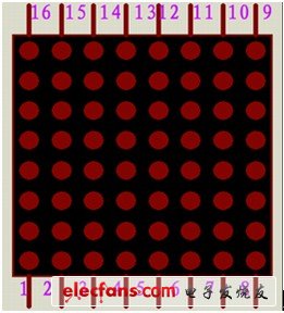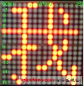 为了方便调试本文把4块8*8组成的16*16的点阵屏的行信号扫描输出管脚和列信号显示输出管脚分别引到显示屏的两边。