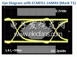 我们对一个内置意法半导体的ECMF滤波器的USB接口进行测试,从USB 480Mb/s的眼状图中可以看出,该接口设计100%符合USB高速数据传输标准,同时信号衰减度测量值在900MHz时达到30db。