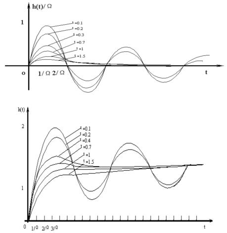 二阶网络在不同阻尼状态下的单位冲激响应与单位阶跃响应曲线如下图所示: