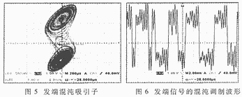 图5为发端电路被s(t)调制后的双涡卷混沌吸引子,