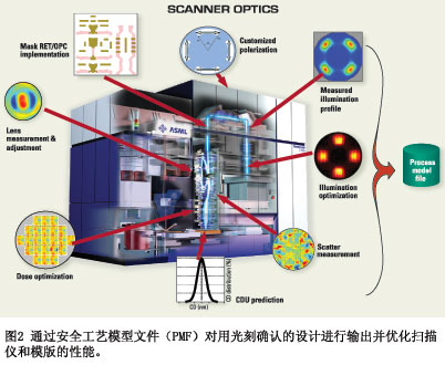 采用高级模拟工具即可对扫描仪和抗蚀剂工艺进行优化。此外,还可以对这些优越的特性进行控制,进而将其应用到PMF中。例如,除了1个或更多的校准模型之外还可以将测得的照明装置的分布情况附加到PMF中,并应用于诸多的后道模拟工具中(图2)。这样,设计链中的其它工程师即可有机会对校准模型无法提供的其它条件进行测试。
