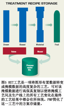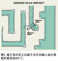 第二组 :设计规则— 在制订设计规则的初期阶段,需要快速地重复工艺变化,还要进行设计可行性研究。一旦相对固定,下一阶段就要制订希望布局设计人员遵守的设计规则。假设已对各种布局情况做出了全面分析,那么这些设计规则就会给出正常完成RET处理工艺所需要的适当的预算。这可能就意味着已具有足够的空间可用于提高边缘偏置的准确量或次分辨率加速特性。一些双曝光技术甚至可能会有额外的规则用于多角替换。为了在某些规则限制上给设计人员提供一些灵活性,经常会推出第二套DFM建议规则。这样设计人员就可以选择他或她自身的命运。在某些情况下,是不能为了推行建议使用的规则而牺牲布局设计的(图4)。