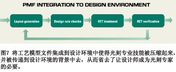 将工艺模型文件集成起来编入预流片设计阶段-或者是设计环境-正是它的价值所在(图7)。将集成方法应用于由光刻来确定设计做法具有特别的重要价值,因为设计纠正的费用一直在不断上涨。每一个设计人员都想第一次就做出正确的设计。在流片设计之后对热点进行修改的能力一般不会有问题,除非你在实际的布局、设计规则、或者是光刻工艺过程中发现了需要纠正的问题的时候遇到麻烦。