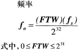 fs表示系统的时钟频率,FTW为频率调谐字,232表示相位累加器的容量。