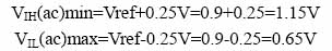 其中,VIH(ac)min是VIH(ac)规范的最小值,VIL(ac)max是VIL(ac)规范的最大值,Vref是参考电压,对DDR1来说是1.25V,DDR2来说是0.9V,DDR3来说是0.75V。