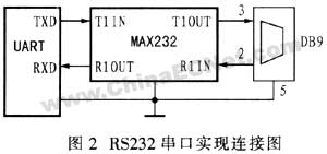 利用max232来实现电平转换,将uart转换为rs232串口。电路图如图2所示。