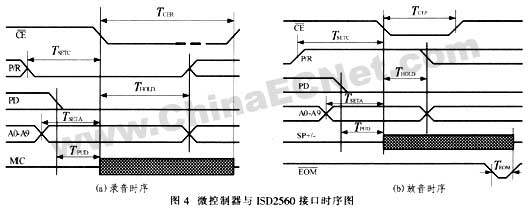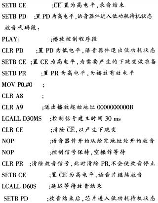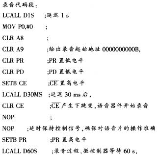 理解微控制器与isd2560时序上的这些特点后,给出微控制器控制语音器件录音和放音的程序代码。限于篇幅,只给出录放音的核心控制代码: