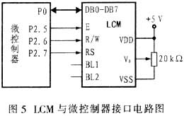 图5给出lcm与微控制器的接口,下面介绍各接口线的功能。