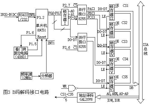 摘 要: IRIG-B格式时间码(简称B码)为国际通用时间格式码,用于各系统的时间同步。“B码解码接口卡”为EISA(或ISA)总线接口卡,将标准时统设备送来的IRIG-B(DC)码,解码出时、分、秒,并加入毫秒信息,送入主计算机,以校准本机的系统时间。本文给出以单片机为核心的“B码解码接口卡”电路设计和板内程序流程。