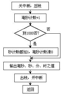 形成毫秒值:将1kHz信号接到单片机的INT1端,每毫秒产生一次中断。INT1中断处理程序完成毫秒计数,当计到1000ms时完成秒加1。
