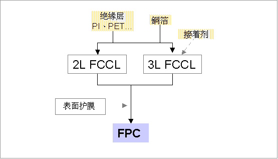 软性铜箔基板(Flexible Copper Clad Laminate, FCCL)为软板最重要的上游源物料,主要分为两大类:有胶系三层软性铜箔基板(3L FCCL)与新型无胶系二层软性铜箔基板(2L FCCL)。