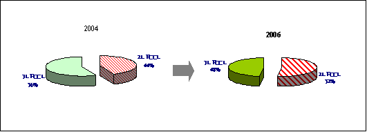 图二、2004及2006年全球2L FCCL/3L FCCL比例变化