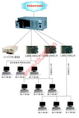 二、解决方案: 电话系统在连接数据网络的PC体系结构上运行Windows/NT等操作系统,它允许将呼叫中心电话与Internet通信集成在同一个软硬件平台上,可以接收电话、传真、数字寻呼、接收电子邮件和Web服务器,系统可以完成无人值守、语音邮件、呼叫控制、呼叫追踪等智能化功能,提高系统的效率。
