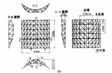 (3)左、右片桁架通过连接板联接,便于运输与架设。