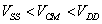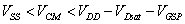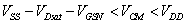 式中,VSS为负电源电压, VCM为共模输入电压,VDsat为源漏饱和压降,VGSP为PMOS的栅源电压。同理,NMOS差动输入级的共模输入电压范围可表示为: