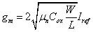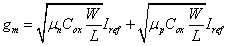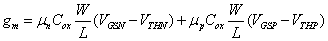 当在高共模输入区时,N差分对M2、M3工作,P差分对M1、M4截止。开关管M13、M14开启,抽取M15上的电流,开关管M17、M18截止,M16的电流全部流入N差分对,则此区间的等效差分跨导为: